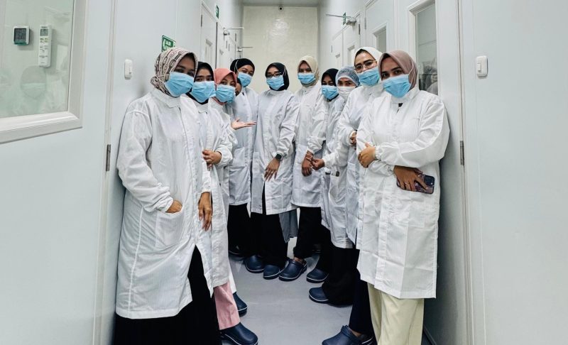Para peserta mendapatkan penjelasan mendalam dan menyaksikan langsung proses produksi, mulai dari tahap mixing—pencampuran bahan aktif dengan formula yang tepat—hingga filling, yaitu pengisian produk ke dalam kemasan menggunakan mesin berteknologi tinggi. Seluruh rangkaian memperlihatkan ketelitian dan kontrol kualitas yang diterapkan pabrik ESBHI.