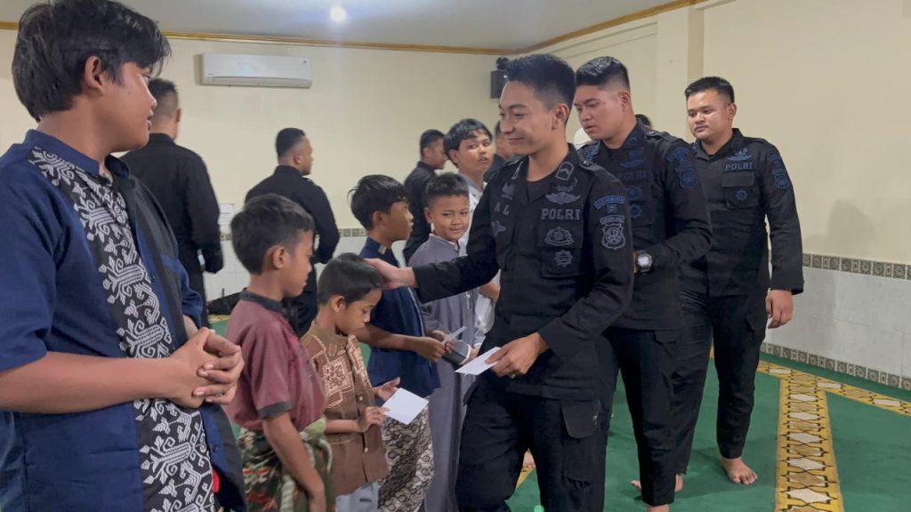 Jakarta Pusat — MediaPers.com | Brimob Polda Metro Jaya menyantuni 17 anak yatim dan menggelar doa bersama di Masjid At-Taubah, Kwitang, Jakarta Pusat, Jumat (27/03/2026). Kegiatan ini merupakan bentuk kepedulian sosial Polri kepada masyarakat di lingkungan sekitar Asrama Brimob.