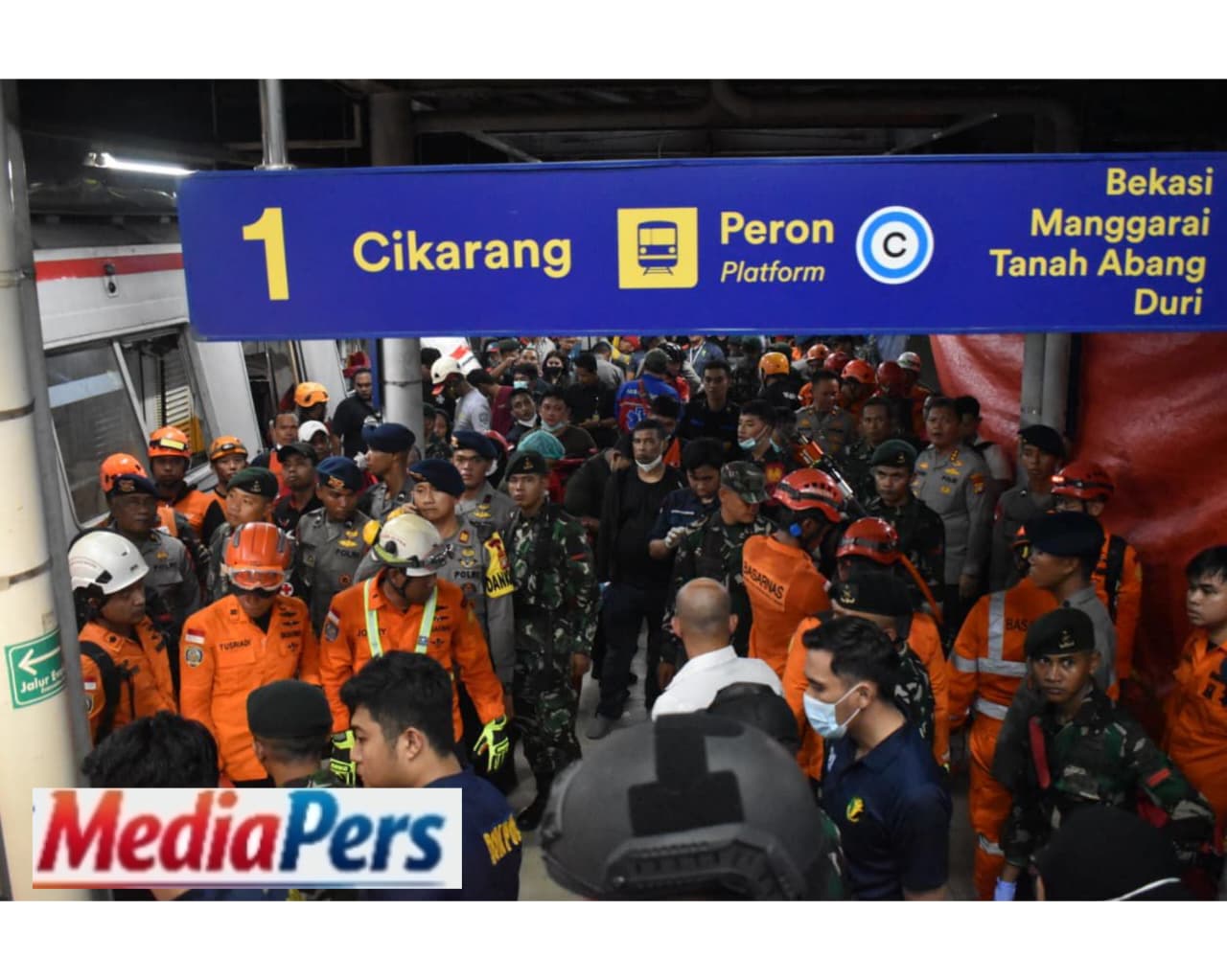 MediaPers  //  KODAM JAYA – BEKASI. Prajurit Kodam Jaya/Jayakarta dari Yonif 202/Tajimalela (TM) dan Kodim 0507/Bekasi bergerak cepat mengevakuasi dan mengamankan lokasi kecelakaan KA Argo Bromo Anggrek dengan KRL jurusan Cikarang–Jakarta di Jalur 1 dekat Stasiun Bekasi Timur, Senin (27/04/2026) pukul 20.30 WIB.