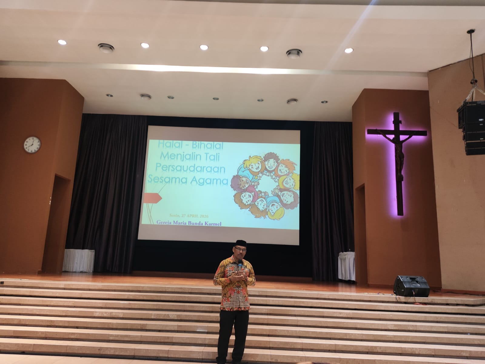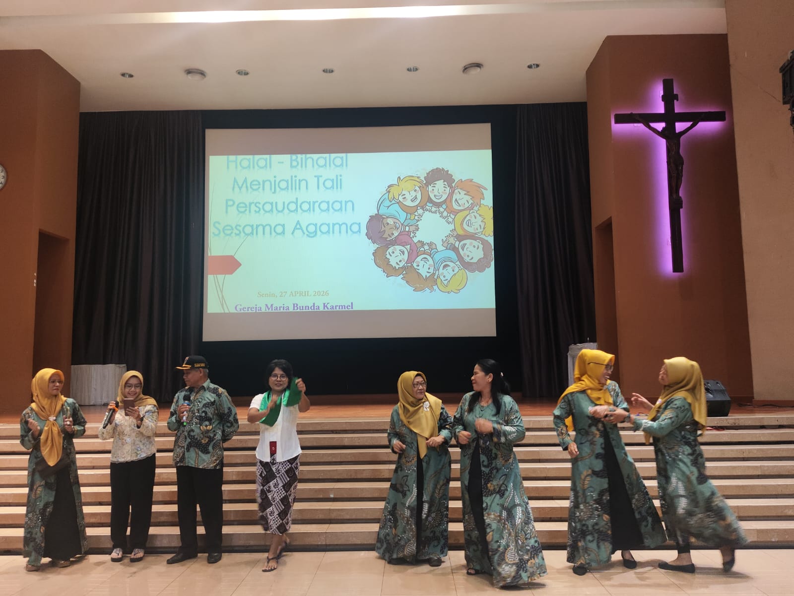 JAKARTA BARAT — Semangat kebersamaan dan toleransi antarumat beragama tercermin dalam kegiatan Halal Bihalal bertema “Menjalin Tali Persaudaraan Sesama Agama” yang digelar di Gereja Maria Bunda Karmel, Senin (27/4/2026) malam.Halal Bihalal lintas agama itu terselenggara berkat dukungan Stella Aryati selaku Ketua Seksi Hubungan Antar Agama Gereja Maria Bunda Karmel.