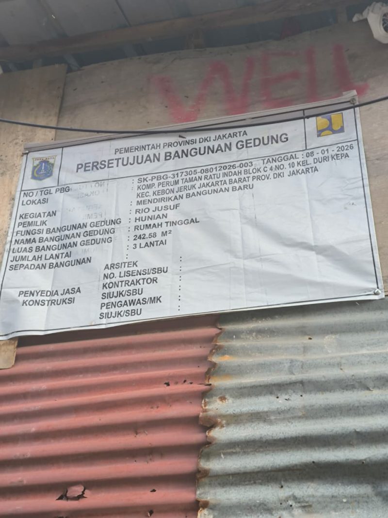 Dugaan tersebut mencuat setelah ditemukan sebuah plang izin dengan nomor SK-PBG-317305-08012026-003 tertanggal 8 Januari 2026 di kawasan Kebun Jeruk, Jakarta Barat. Keberadaan plang tersebut menimbulkan kecurigaan masyarakat terkait keabsahan dokumen perizinan bangunan yang terpasang di lokasi proyek.